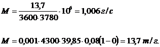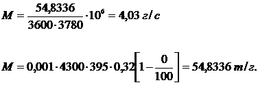 во время розжига или загрузки угля в топку, расход газов - 0,99 м3/с. Масса