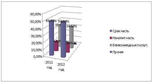 Структура доходов Пенсионного фонда в г. Нижнекамске на 2011-2012 года