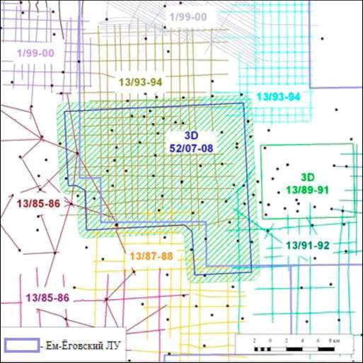 Рисунок 2 - Схема изученности сейсморазведочными работами Ем-Ёговского ЛУ
