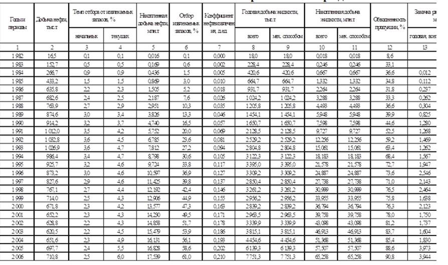 Характеристика основных показателей разработки Ем-Ёгского месторождения приведены в таблице 3.