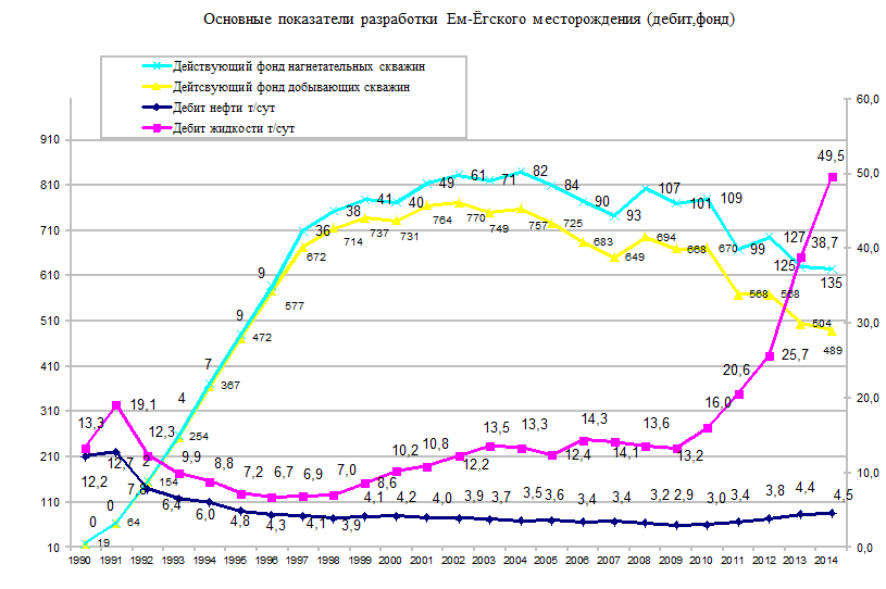 динамика основных показателей разработки Ем-Ёгского месторождения представлены