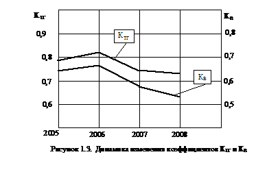 Графики, отражающие динамику изменения коэффициентов КТГ и КВ
