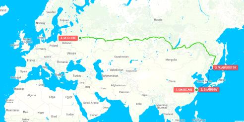 Рис. 8. Маршрут «Шанхай-Владивосток- Москва»