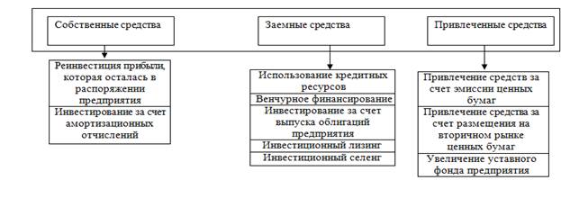 В современной экономической литературе учеными выделяются три способа привлечения инвестиций в инновационную деятельность: за счет собственных, заемных и привлеченных средств (рис. 1.1.).