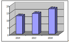 Увеличение в 2015 году по отношению к 2014 году на 12,8 %, в 2016 году по отношению к 2015году на 39,2 %, к 2014 году - на 23,4 %.