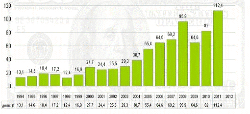 с 2010 г. - до $210,7 млрд. Экспорт России в январе-декабре 2011 г. составил