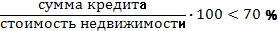 Максимальная сумма кредита, возможная для предоставления клиенту рассчитывается по специальной схеме. Отношение суммы кредита к стоимости закладываемой недвижимости не должно превышать 70%: