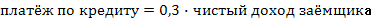 отношение платежей по кредиту к сумме доходов клиента составляет не более 30%