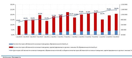 Динамика рынка недвижимости и доля ипотеки в сделках с жильём 2010-2013 гг.