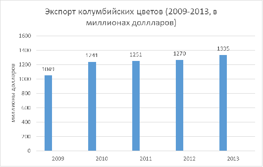 экспорт колумбийских свежих цветов вырос на 27,3% в период между 2009 и 2013.