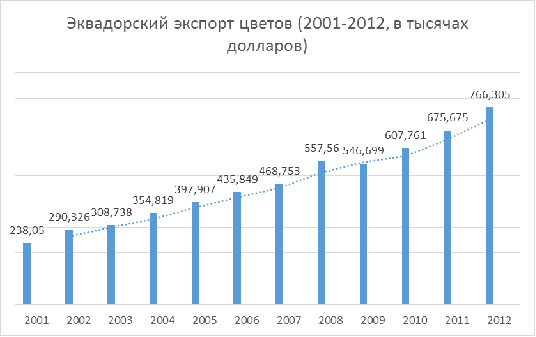 Рассматривая общую стоимость экспорта цветов из Эквадора в долларах можно