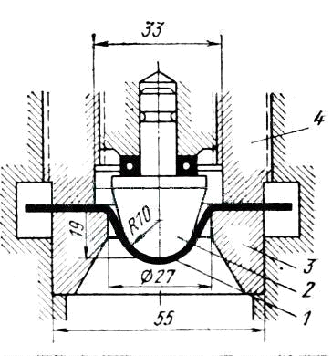 пуансон; 3 - матрица; 4 - прижим