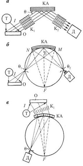 Рисунок 2.4 Схемы спектрометров: а - Соллера; б - Иоганна; в - Кошуа