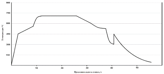 Нагрев до 690 oС с замедленным нагревом от 450 до 550 oС;