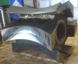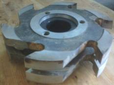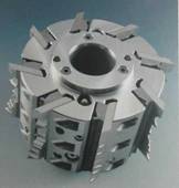Режущие пластины являются сменными режущими элементами ножевых головок. Центробежно-клиновое крепление - нож держится подтягиваемой клиновой планкой; в следствии данного способа крепления, центробежные силы влияющие на клин во время работы не дадут выпадать ножам, даже если клины не затянуты. Материал пластин - сталь 8Х1НФТ или ХВ62С, HRC=57 - 61. Материал корпуса ножей - сталь У8.