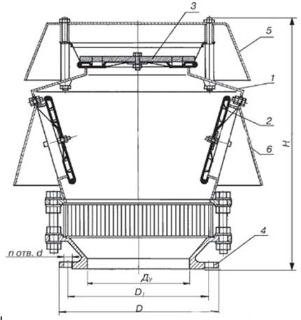 тарелка вакуума; 3 - дыхательный клапан давления; 4 - присоединительный фланец;