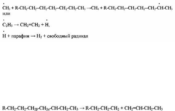 В общем случае образующиеся первичные радикалы с длинной цепью не устойчивы. Их стабилизация происходит в основном за счет расщепления связи С-С, находящейся в β-положении к радикальному центру, что отвечает общему принципу наименьшего изменения структуры: