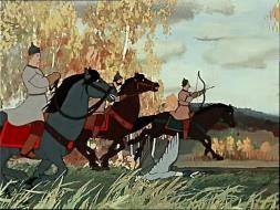 Владимиром - светлой масти конь, под злодеем вороной. Этой деталью аниматоры