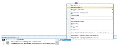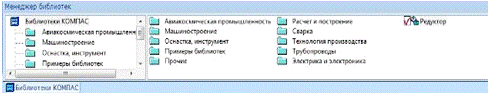 На первой вкладке - Библиотеки КОМПАС - отображается структура менеджера,