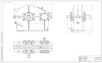 построение трех видов цилиндрического редуктора (рисунок 15 а, б, в).