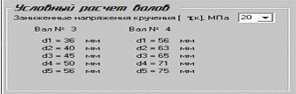 Сначала проводится условный расчет валов за заниженными напряжениями