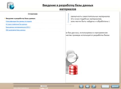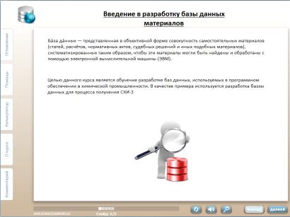 Для создания интерактивных учебных материалов была использована система CourseLab. Создан курс по изучению процесса проектирования базы данных.