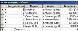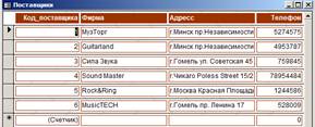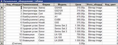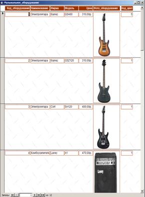 Рисунок 32 - Таблица «Музыкальное оборудование»