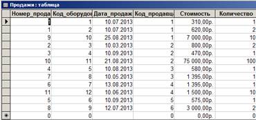 [Код_оборудования]=[Склад].[Код_оборудования]((([Продажи].[Дата_продажи])