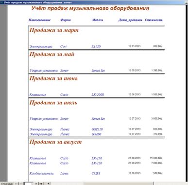 Рисунок 45 - Отчёт «Учёт продаж музыкального оборудования»