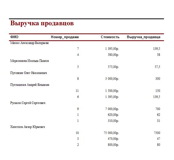 Рисунок 47 - Отчёт «Выручка продавцов»