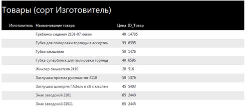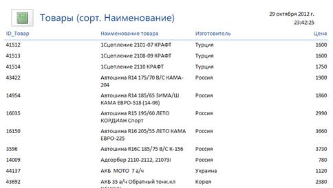 Рис. 5. Общий отчёт по всем товарам БД (сорт. Наименование)