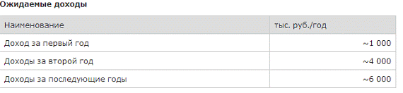 ожидаемой прибыли (статьи доходов, статьи расходов) и экономических показателей
