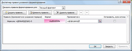 Условное форматирование / создать правило /