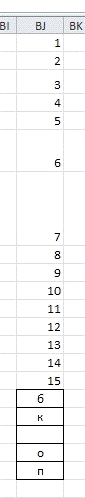 BJ1:BJ15 вводим цифры от 1 до 15. BJ16:BJ20