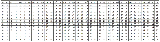 Дописываем дни недели, месяцы, и нумерацию месяцев: