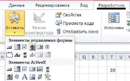 Создаем счетчик: Разработчик / Вставить /