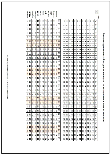 Создание динамической модели календаря с помощью именованных констант