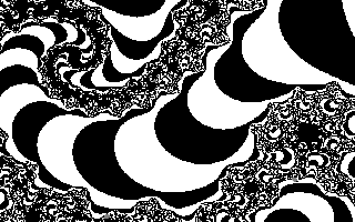 Вышеописанный алгоритм дает приближение к так называемому множеству Мандельброта. Множеству Мандельброта принадлежат точки, которые в течение бесконечного числа итераций не уходят в бесконечность (точки, имеющие черный цвет). Точки, принадлежащие границе множества (именно там возникает сложные структуры), уходят в бесконечность за конечное число итераций, а точки, лежащие за пределами множества, уходят в бесконечность через несколько итераций (белый фон).