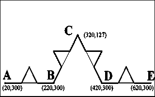 расположим первое поколение этого фрактала на сетке координат дисплея 640 x 350