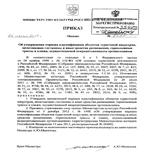 утверждении порядка классификации объектов туристской индустрии , включая