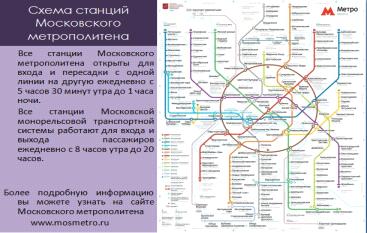 которой размещена карта метрополитена города Москвы, с указанием графика работы