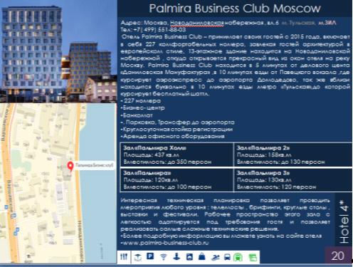 с указанием адреса , информацией о конференц- залах для проведения информации.