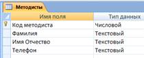 Рисунок 2.8 - Структура таблицы «Методисты»