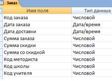 Рисунок 2.9 - Структура таблицы «Заказы»