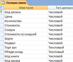 Рисунок 2.10 - Структура таблицы «Позиции