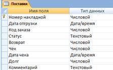 Рисунок 2.11 - Структура таблицы «Поставки»