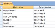 Рисунок 2.15 - Структура таблицы «Учителя»