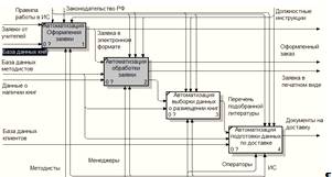 Суть работы методистов заключается в вывозе заказных книг по районам республики Башкортостан. Методисты принимают заказы от учителей (обычно по телефону), оформляют заявку с использованием предложенной информационной системы. Затем заявка отображается в системе, ее могут просматривать менеджеры, которые эту заявку обрабатывают: определяют цены, анализируют наличие. (в подвале,в торговом зале). Если книг в наличии нет, то менеджеры делают заказ.
