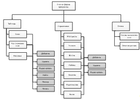 Графический интерфейс информационной системы предназначен для ввода и отображения данных системы. Первым этапом разработки интерфейса является анализ решаемых пользователем задач и структуры имеющейся информации. На основе этих данных выполняется проектирование структуры меню.