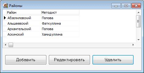 форма Районы. Она обеспечивает возможность выполнения операций, характерных для